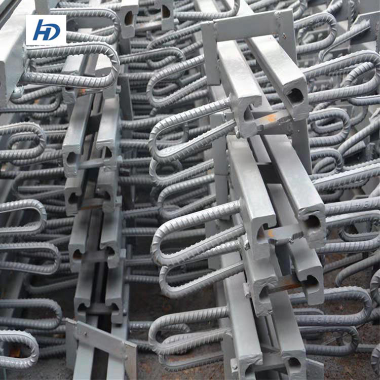 板式橡膠制品這一類(lèi)伸縮裝置,很難滿(mǎn)足大位移量的要求;鋼制型的伸縮裝置,很難做到密封不透水,而且容易造成對車(chē)輛的沖擊,影響車(chē)輛的行駛性。因此,出現了利用吸震緩沖性能好又容易做到密封的橡膠材料,與強度高性能好的異型鋼材組合的,在大位移量情況下能承受車(chē)輛荷載的各類(lèi)型模數支承式(模數式)橋梁伸縮裝置系列。